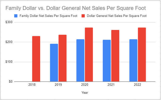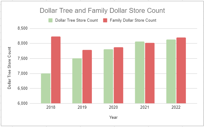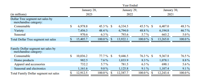 Dollar Tree/Family Dollar did $28 billion in combined 2022 sales vs. $37.8 billion for Dollar General