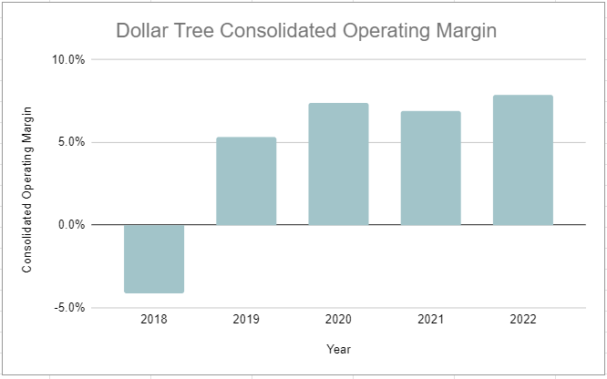 This was the early 1990s. 2 years later (1995), under the Dollar Tree name, the company went public valuing the business at a market cap of $225 million. Once public, Dollar Tree executed a pretty aggressive growth strategy. They were opening 150 stores a year, and acquiring other dollar store concepts typically with debt. Most of these were pretty small deals but by 2008, the company had surpassed 3,000 stores and officially broke into the Fortune 500. At this point, they are quite a large store, but come 2015, they entered into a transformative deal to buy Family Dollar for just over $9 billion in a mix of cash and stock. At the time, FD had 8,200 stores and they also received a higher bid from Dollar General that they rejected. We’ll talk about that store concept in a second, but long story short, they’ve failed to recognize the synergies they originally claimed and they’ve been pretty much unable to get operating margins up for that business.