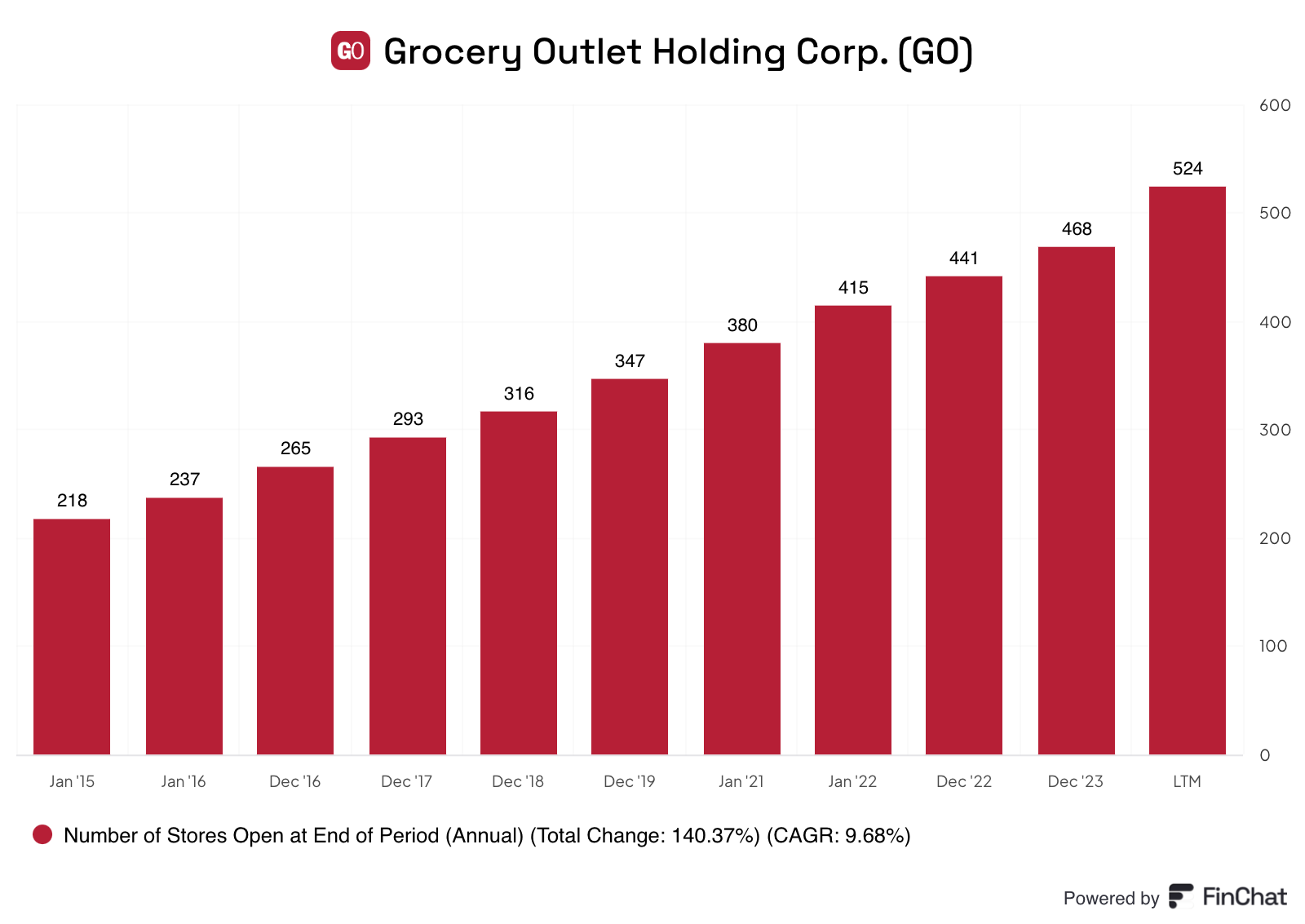 According to their latest investor presentation, Grocery Outlet is targeting 10% annual store growth over the long run and believes that they have the potential for 4,800 stores in total. That’s ~10X the current store base.