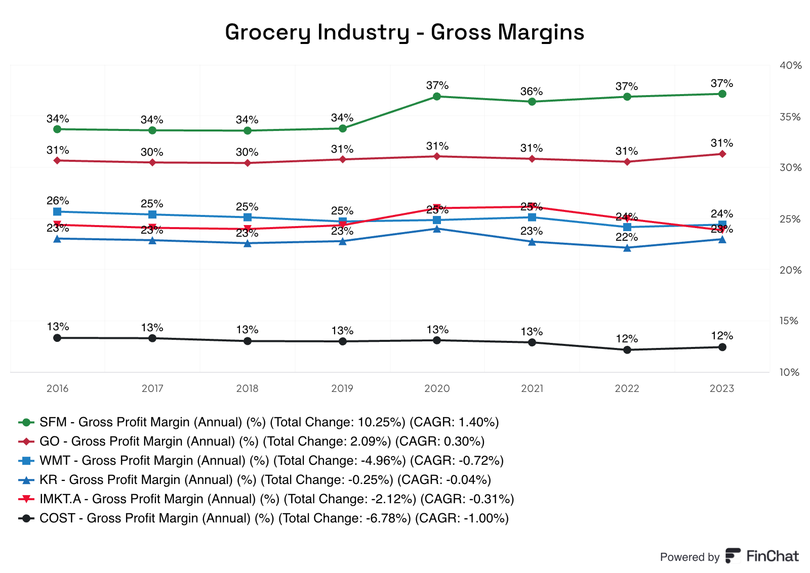 Since they sell primarily to “health enthusiasts” they aren’t really trying to be the low-cost provider. This means that they are able to generate best-in-class gross margins among grocers.