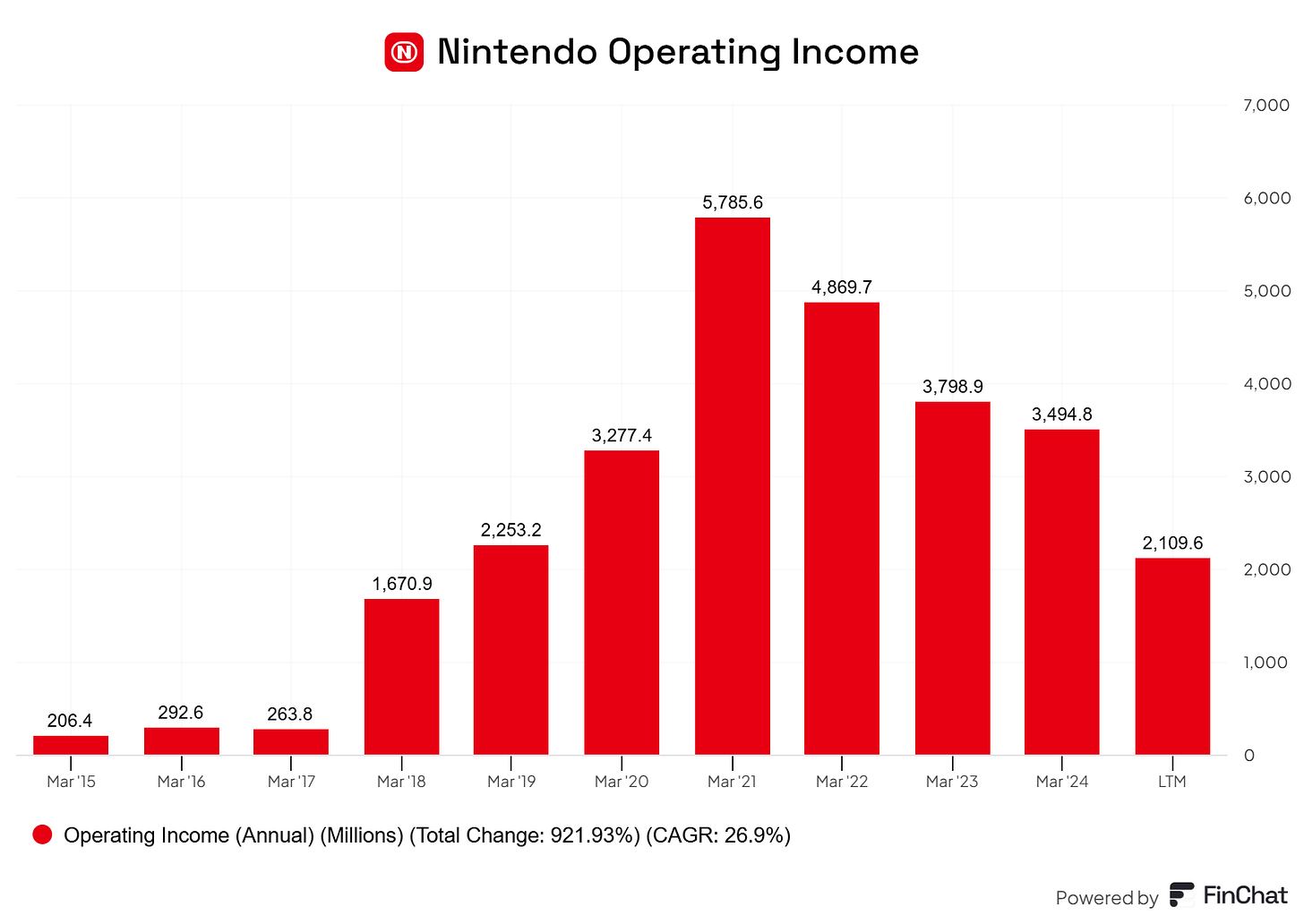 Today, Nintendo’s enterprise value is approximately $70 billion, give or take how you value everything on the balance sheet + its hidden assets. I don’t believe this business will generate much more than $5 billion - $7 billion in annual earnings over the next five years after the Switch is announced.