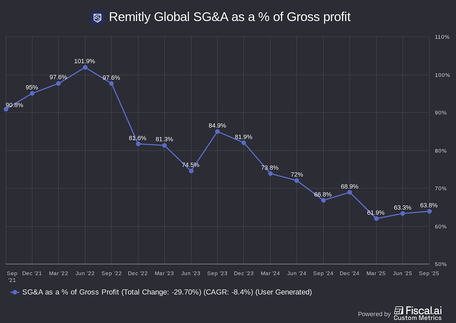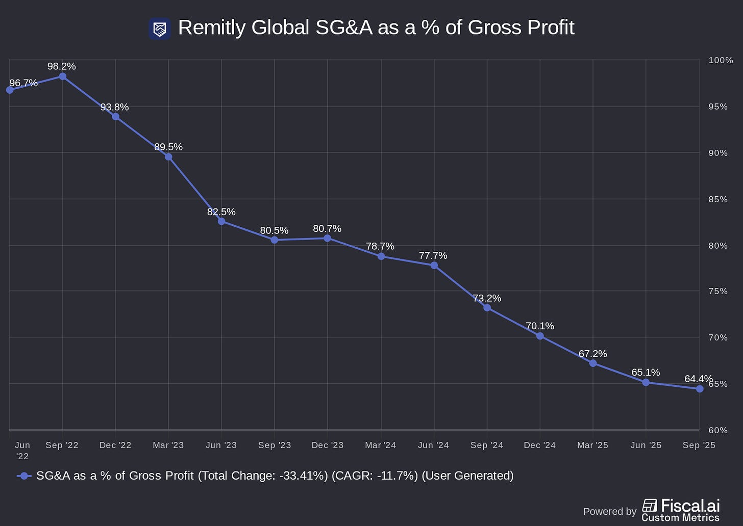 From 2020 through 2024, Remitly made steady progress leveraging its marketing spend. In 2025, it looks like it is…still making progress on this trend? Let’s not kill the thesis on one quarter of slowing efficiency (a quarter with a bunch of new product launches, it should be added).