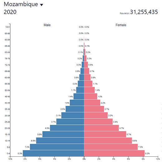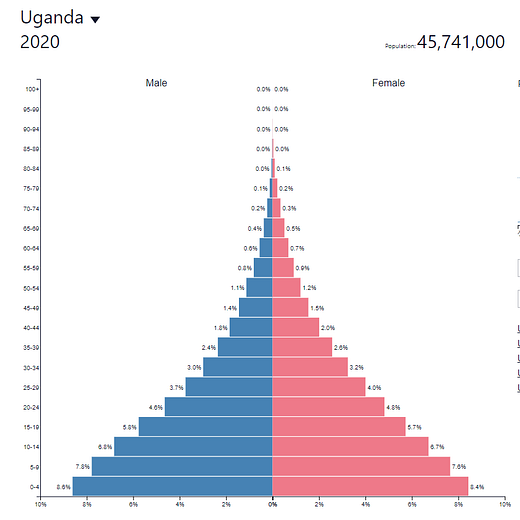 The current population of the African continent is 1.3 billion people. By 2050, this is expected to more than double to 2.5 billion. Looking at some of these population pyramids, it is no surprise why: